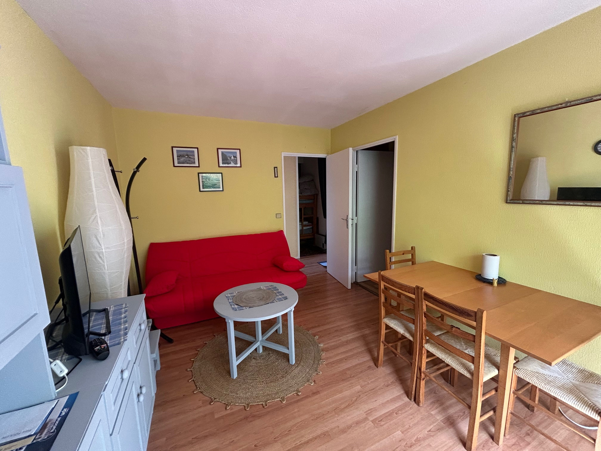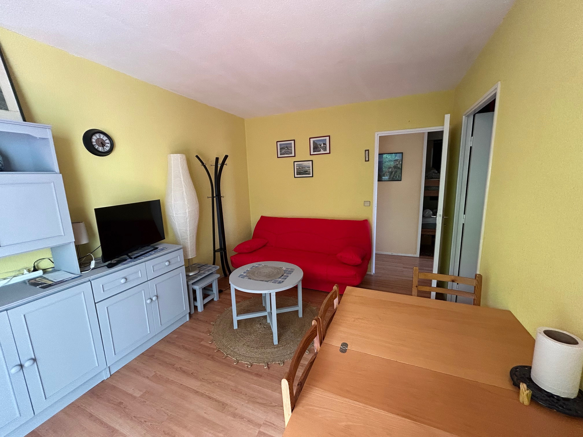 Un séjour avec canapé, pouvant accueillir éventuellement un enfant