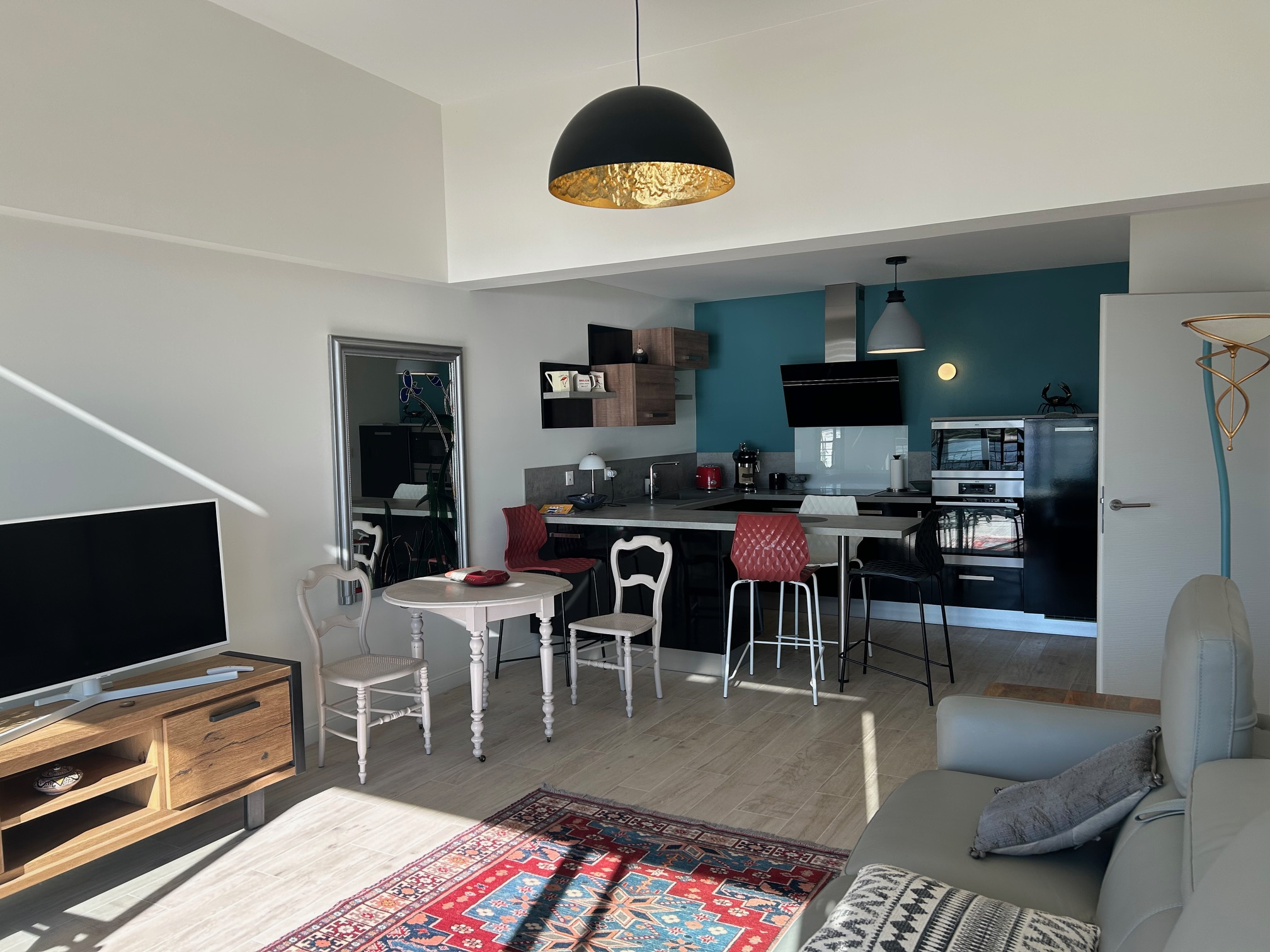 Appartement saisonnier pour 4 couchages ( une chambre avec lit 140 et un canapé lit dans le séjour 140 ) avec vue mer à La Teste-de-Buch (entrée d’Arcachon)